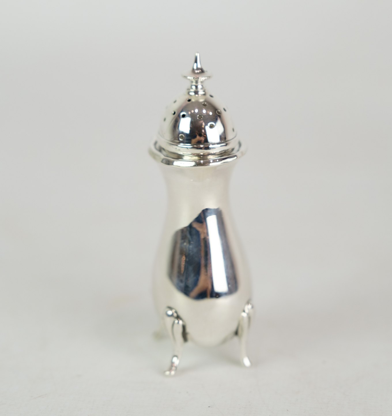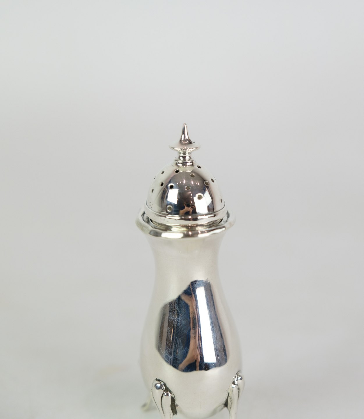 Simple salt shaker on feet, stamped the three tower with master stamps number 16. Weight: 38g