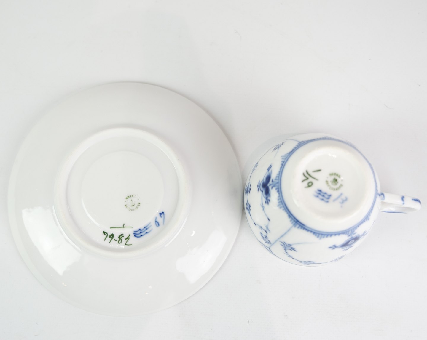 Royal Copenhagen Musselmalet Riflet is an iconic series of porcelain that has enchanted generations with its timeless design. The large coffee cup in this series, with decoration number 1/79 with accompanying saucer no. 79-82, which is a wonderful addition to any porcelain collection.