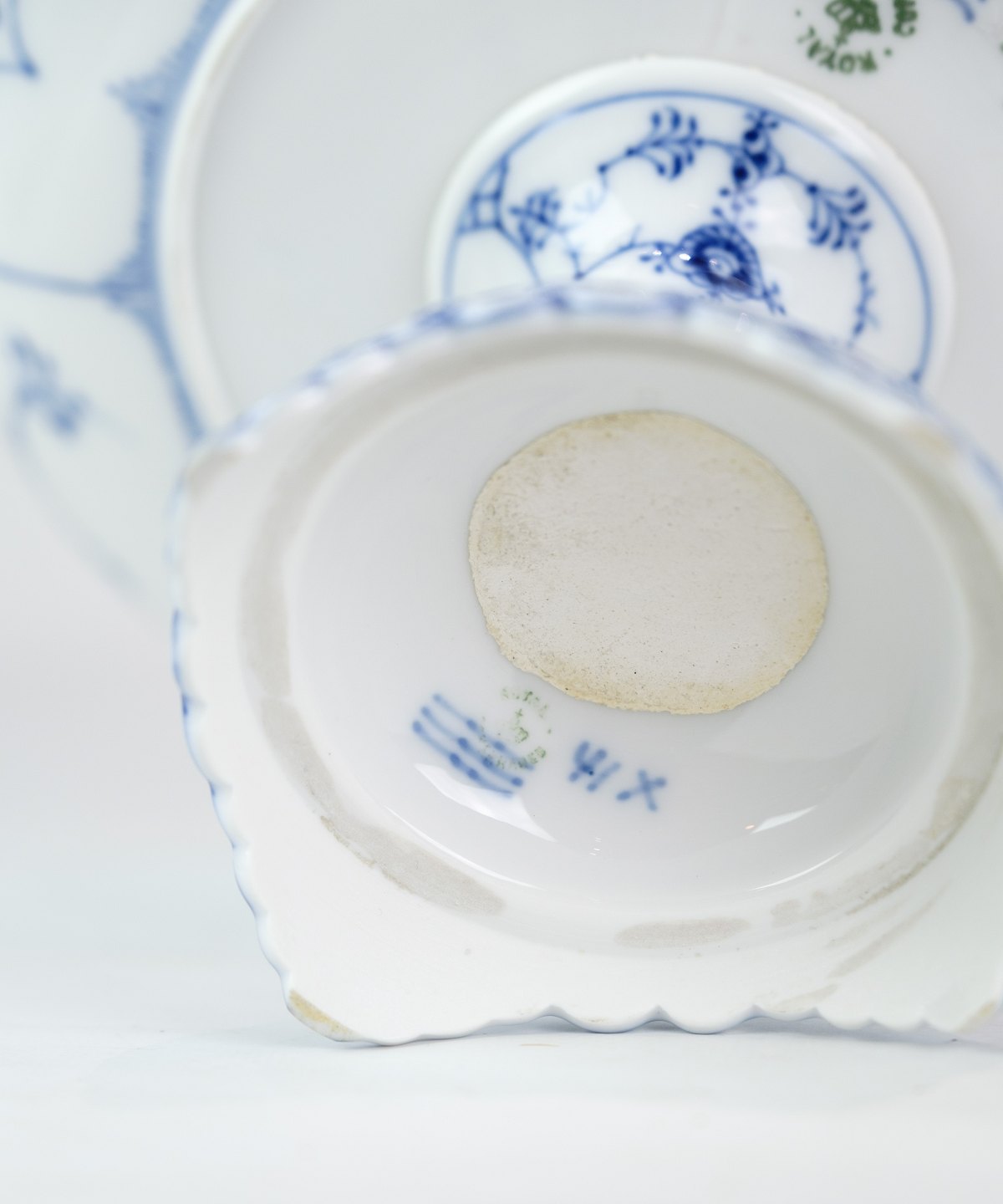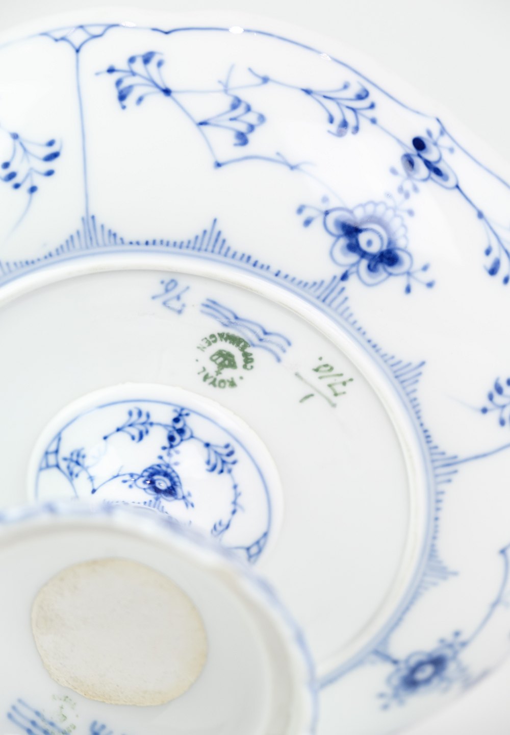 The mussel painted pattern, which is one of Royal Copenhagen's most iconic designs, consists of fine blue patterns inspired by shells and mussels. This pattern adorns the essay and gives it a classic and timeless look.