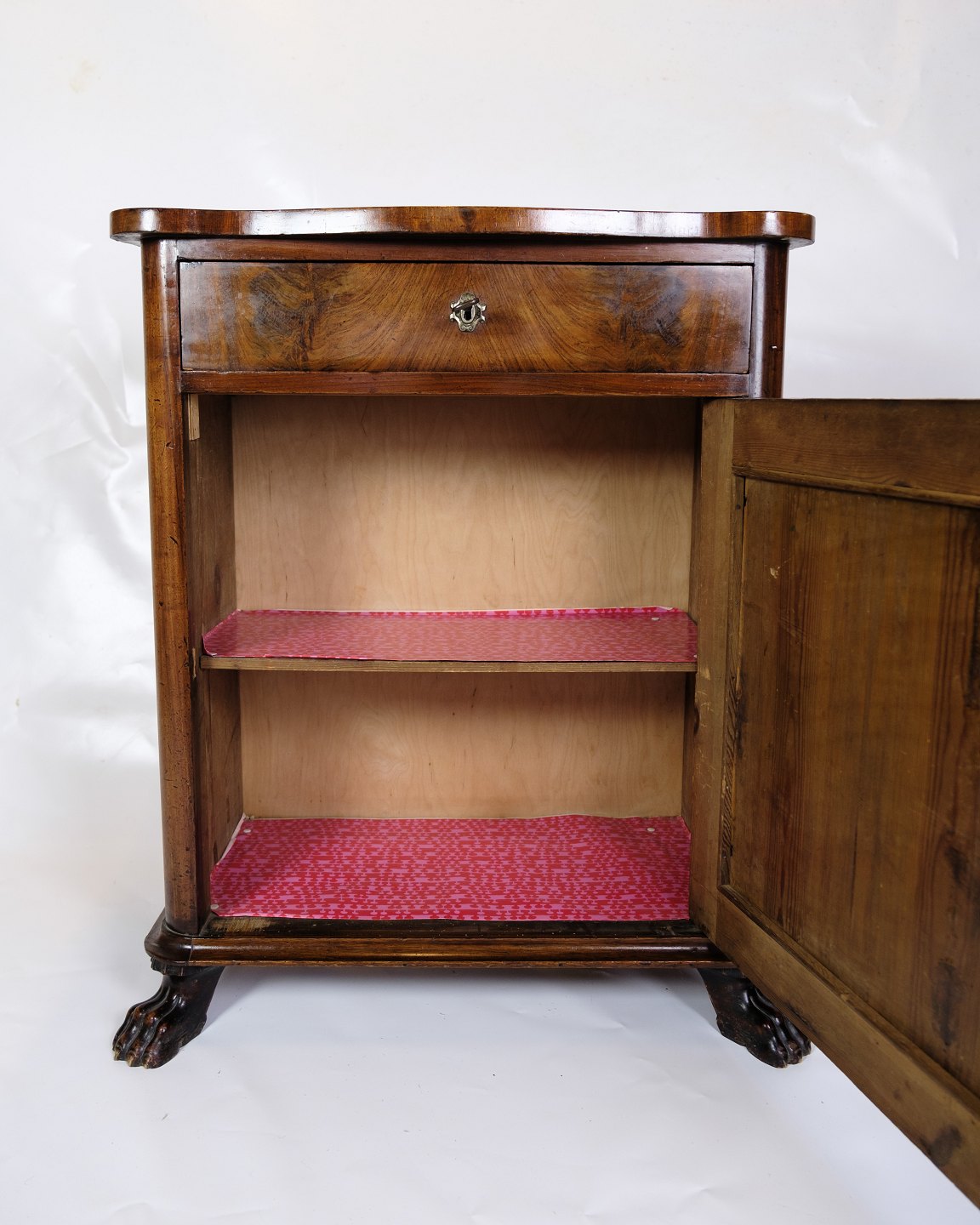 SolgtKonsol Møbel af mahogni med indlagt valnød og med løve fødder og skuffe fremstillet omkring 1880'erne.