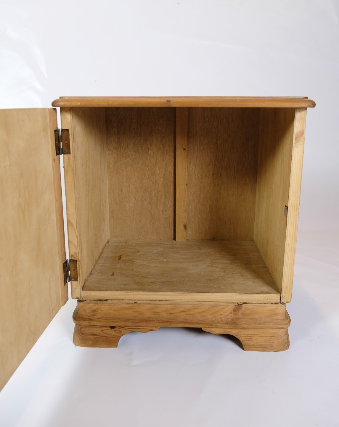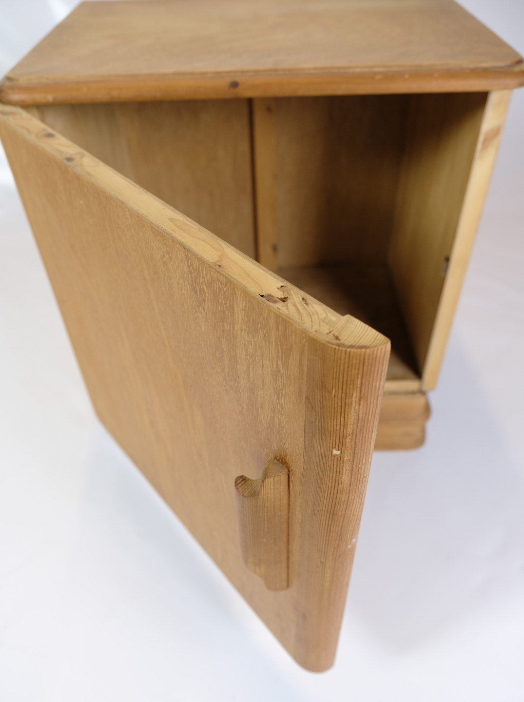 Antique pine nightstand with door and brass hinges from around the 1930s.