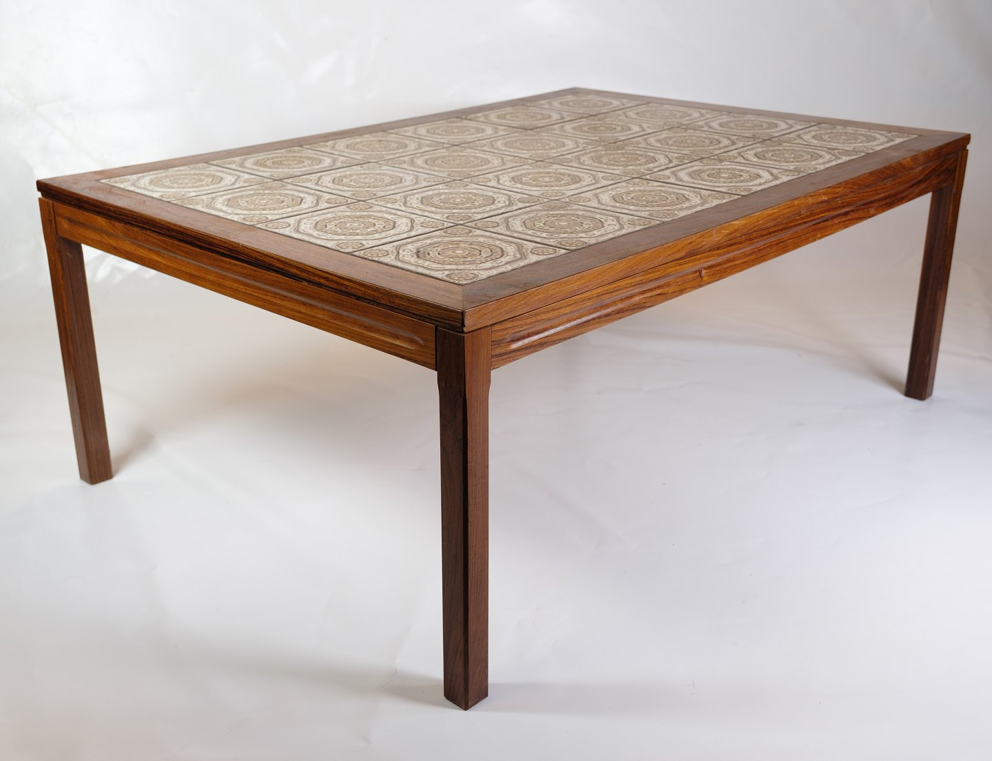 This rosewood coffee table is a beautiful example of the timeless beauty of the Danish furniture designer. Decorated with distinctive tiles, the table adds a touch of unique detail and aesthetic appeal.