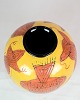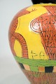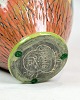 The vase, designed and hand painted by Lene Regius with yellow, orange and green glaze, is an artistic piece that bears the stamp of individual craftsmanship and unique design. Lene Regius' signature adds a personal and authentic dimension to the work.