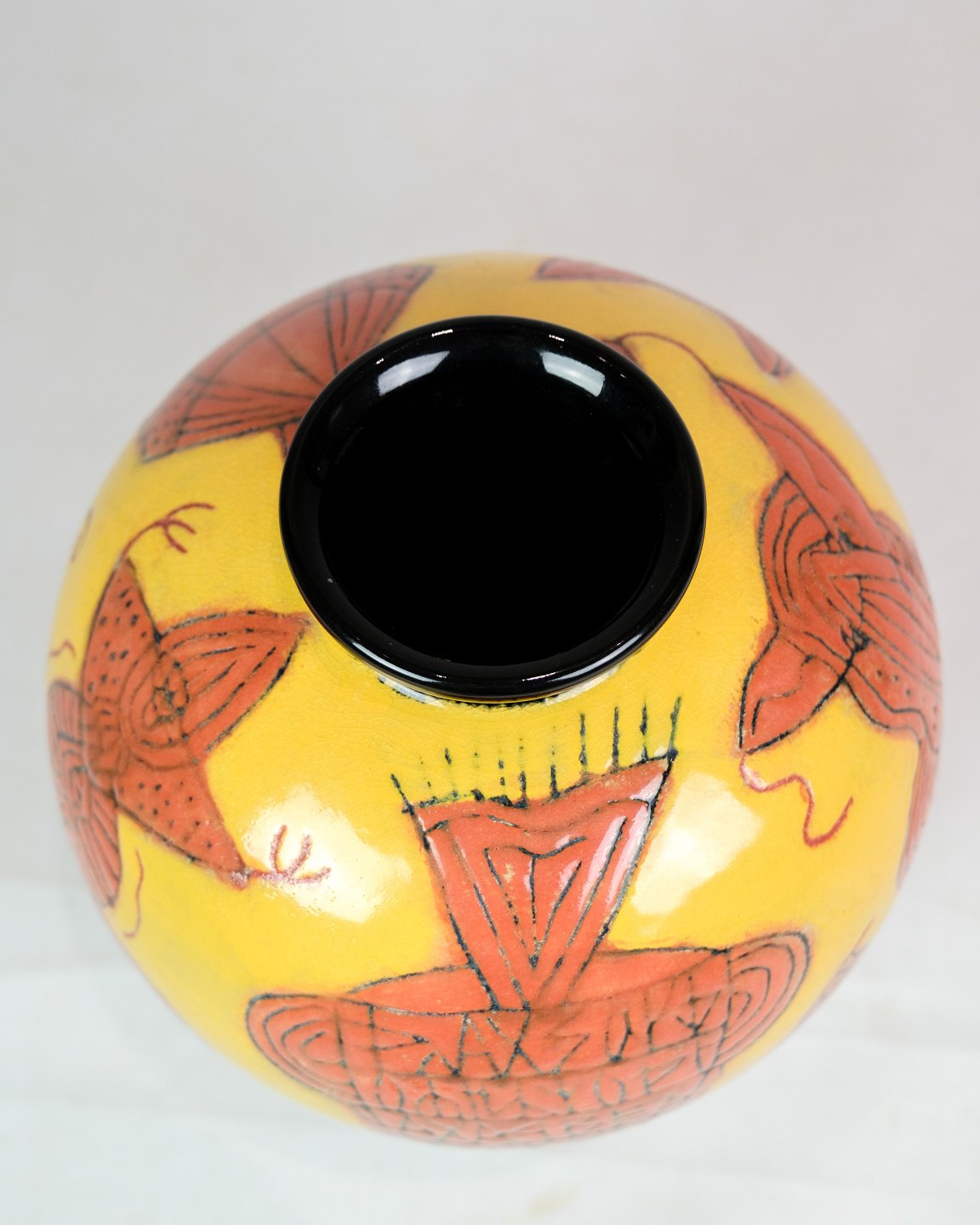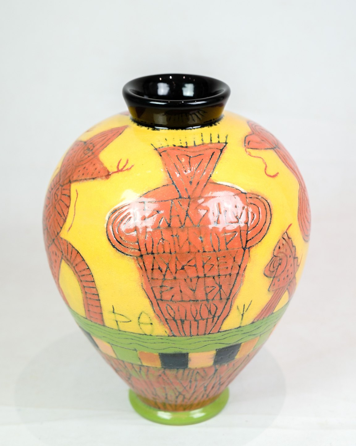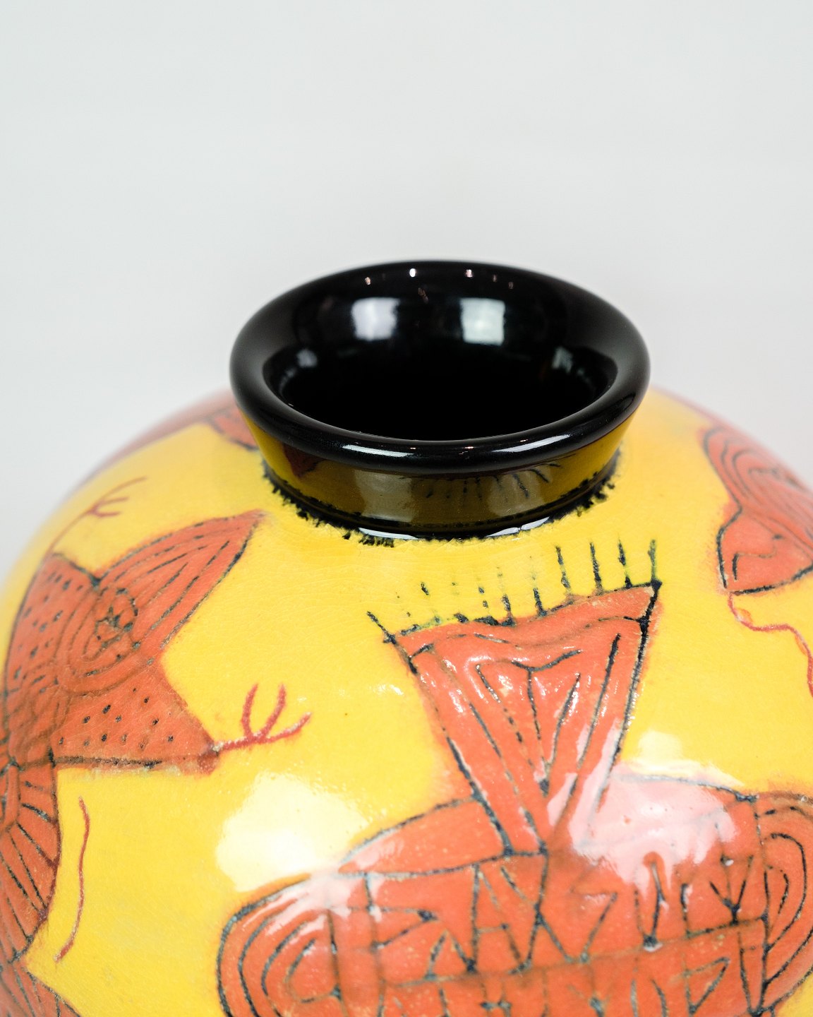 The colors yellow, orange and green used in the glaze give the vase a lively and dynamic character. The unique combination of colors and the hand-painted technique make each vase a unique work of art, where the artist's personal style and creativity come to the fore.