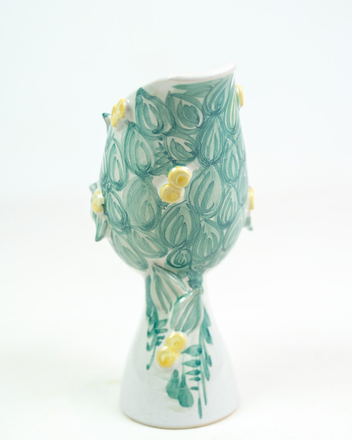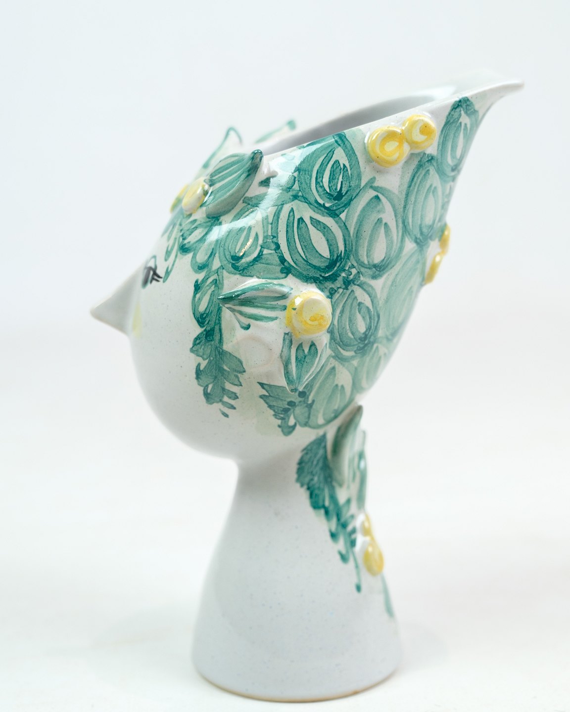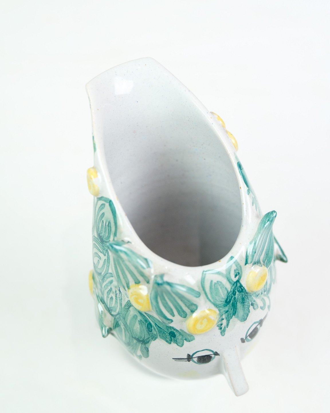 SoldCeramic vase designed by Bjørn Wiinblad, with design no. V18 from 1975, produced in Denmark. This vase represents Wiinblad's distinctive style, which often included imaginative and colorful patterns. With a period influence from the 1970s, this vase is not only a functional object, but also a work of art that reflects the designer's unique aesthetic. A collector's item for lovers of Danish design and Bjørn Wiinblad's creative works.