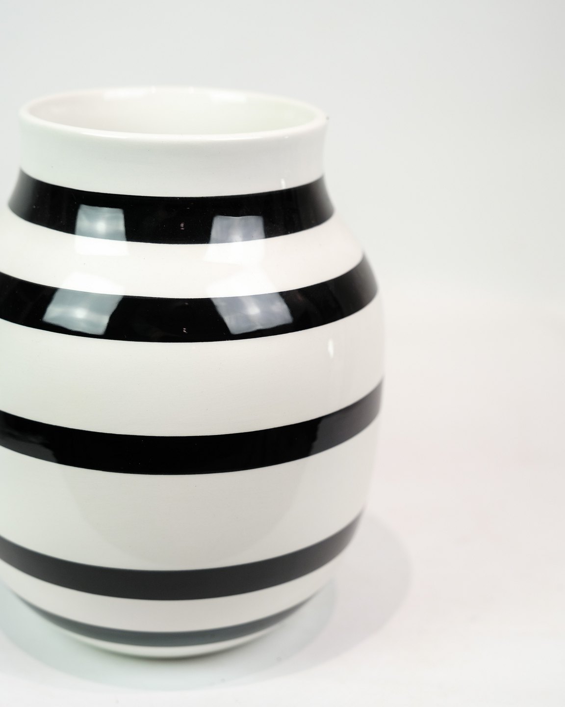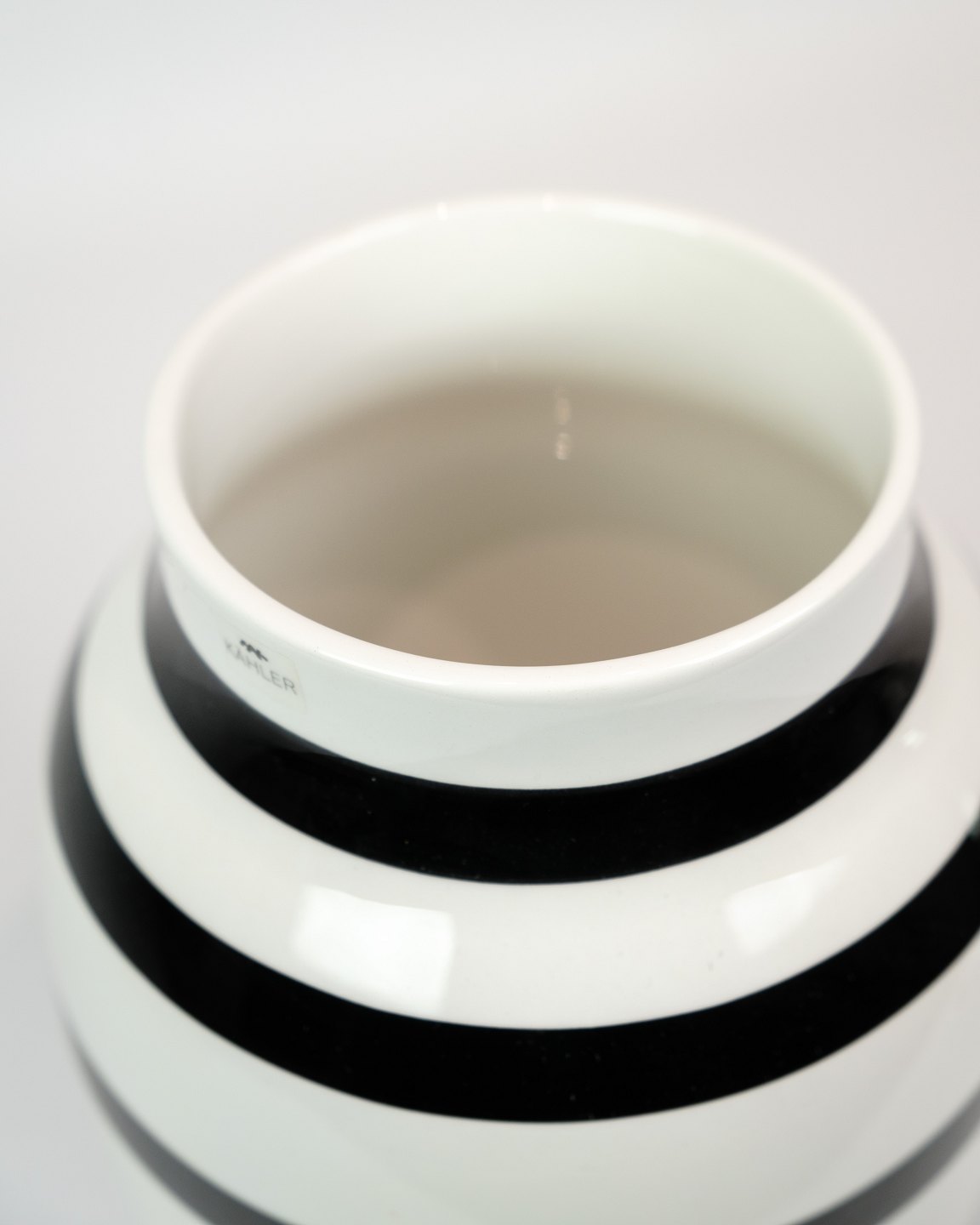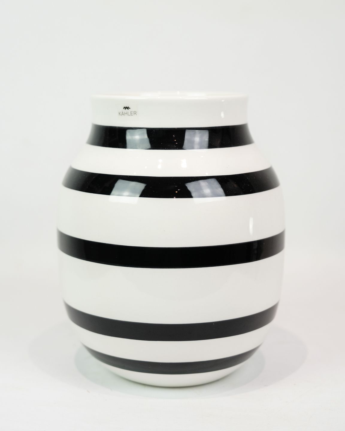 Kähler is an indispensable favorite in countless homes thanks to its classic look and modern design. This beautiful vase, part of a series, is perfect for the Scandinavian home with its simple yet eye-catching expression. Each Kähler vase in the range is hand-painted, meaning no two are exactly alike. The unique charm and personality that comes with the variations in color and width of the stripes make each vase a work of art in itself. Add a touch of elegance and individuality to your home with a Kähler vase that will grace any room with its beauty and uniqueness.