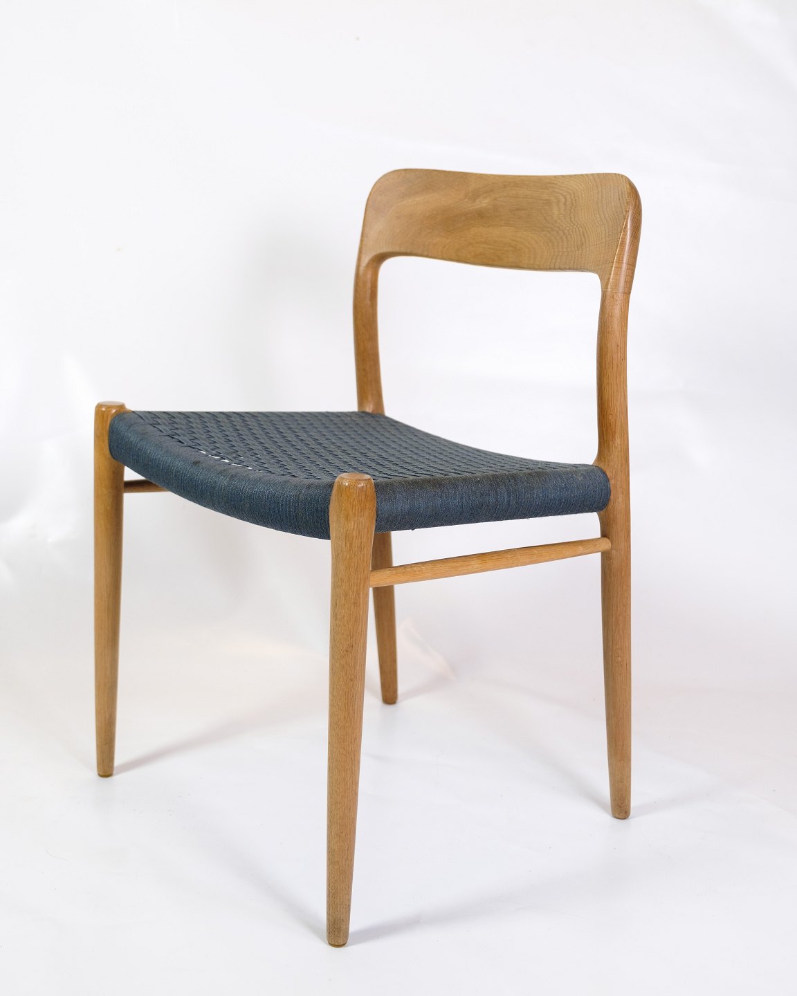 The set of six dining chairs, known as Model 75, is an excellent example of Danish furniture design from the 1960s. Designed by renowned furniture architect Niels O. Møller and manufactured by J.L. Møllers Møbelfabrik, these chairs represent a sublime combination of aesthetics, functionality and craftsmanship.
