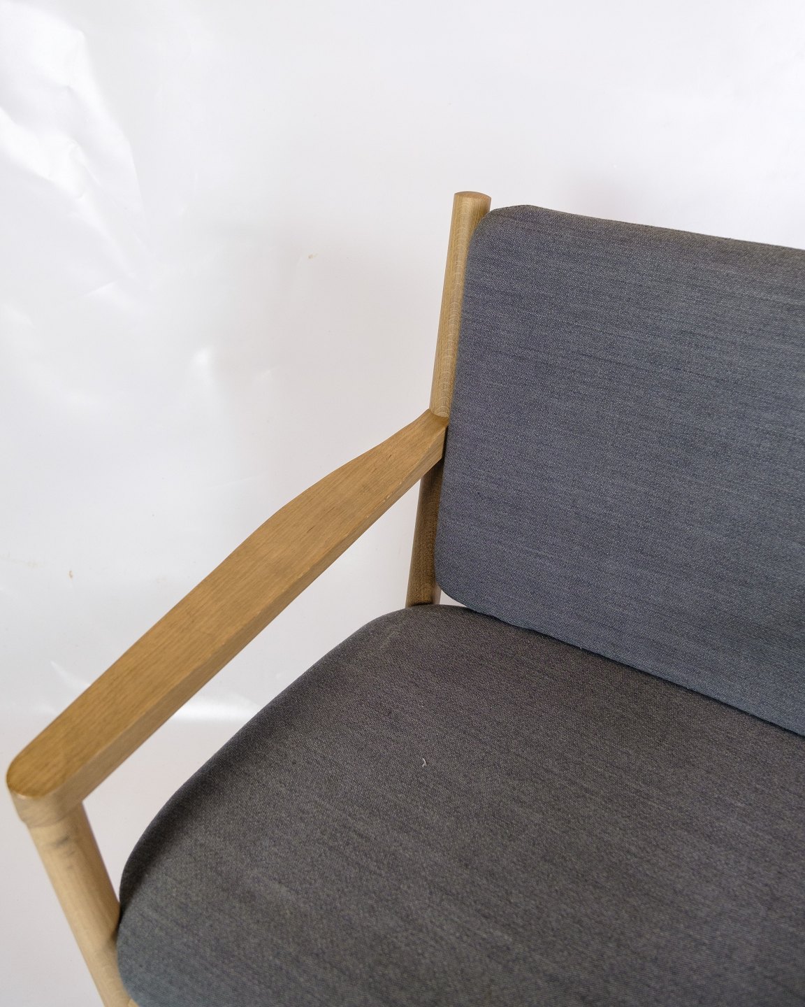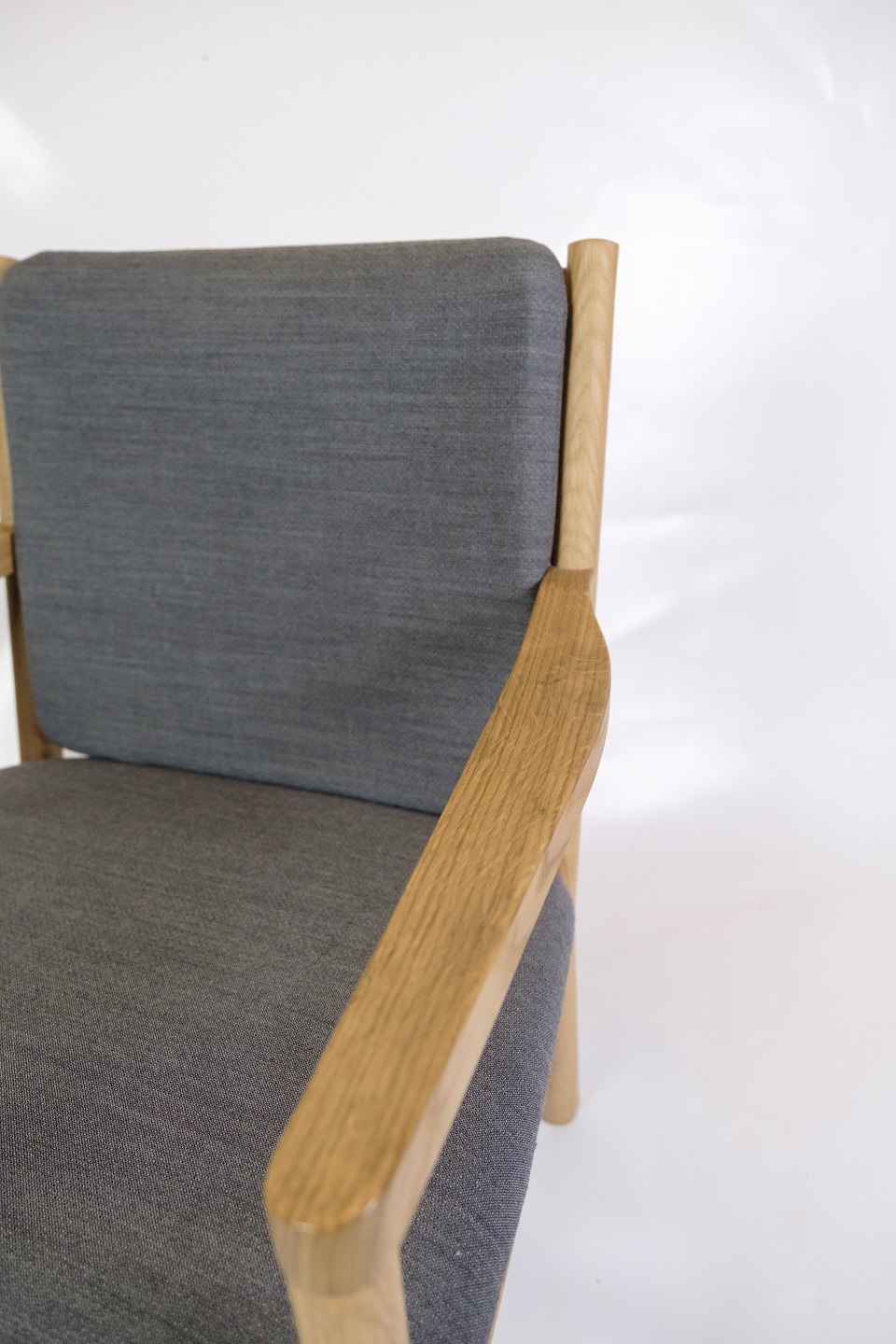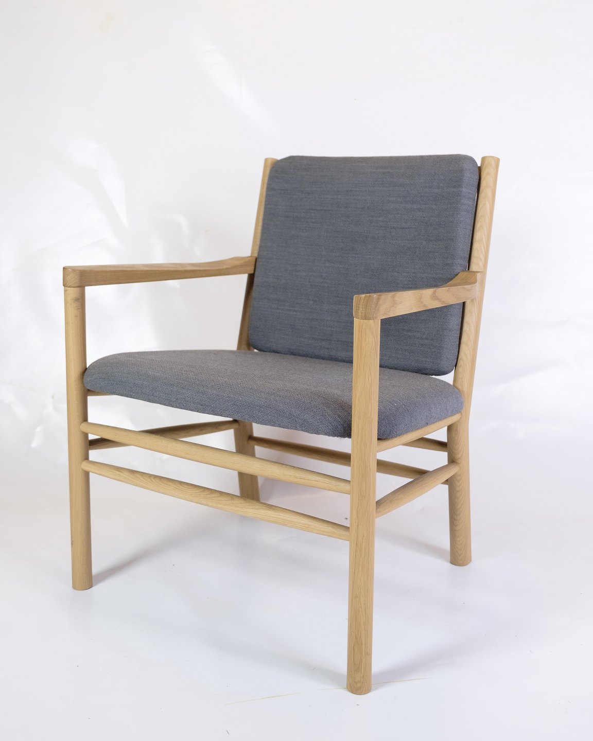 SolgtDette sæt af to lænestole, model J147, udstråler en sublim kombination af komfort og elegance. Fremstillet af solidt egetræ og polstret i et stilfuldt gråt uldbetræk, tilbyder disse lænestole en luksuriøs siddeoplevelse.