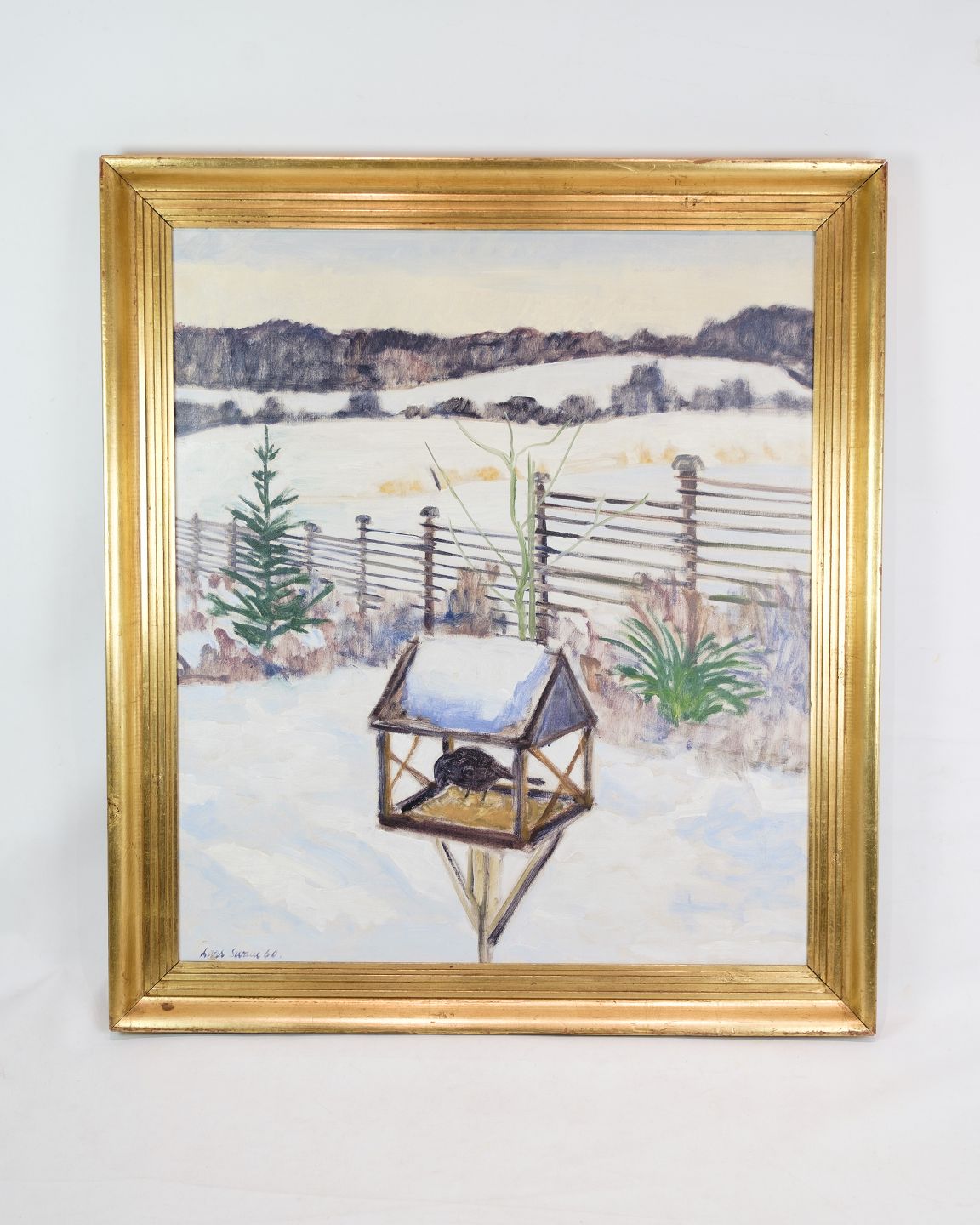 This oil painting of a snowy landscape, signed by Lars Swane and created in the 1960s, is a beautiful example of Danish landscape art from this era. With its calm and evocative image of a winter landscape, the painting manages to capture the beauty and peace of the Nordic nature.