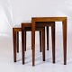 SoldThis set of side tables, designed by Severin Hansen in the 1960s, is an excellent example of Danish mid-century modern design. The tables are made of beautiful rosewood and decorated with Royal Copenhagen tiles, creating an elegant combination of natural materials and artistic decoration.