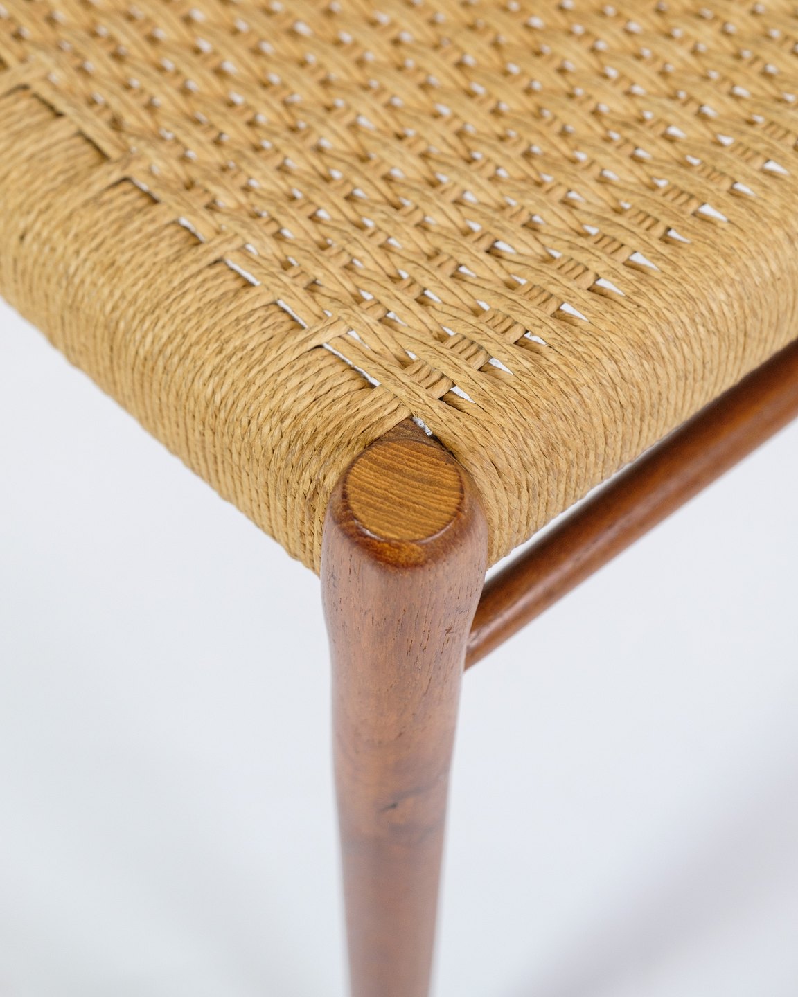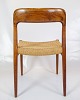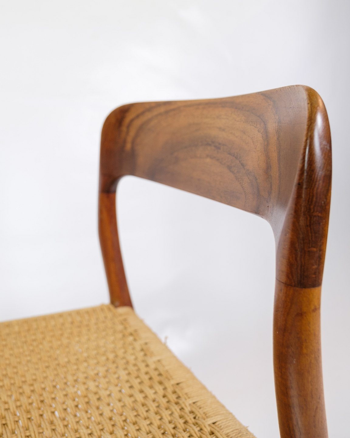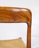 Niels Otto Møller, kendt for sine rene linjer og fokus på håndværk, har designet disse stole med en balance mellem form og funktion. Modellens slanke, kurvede linjer og ergonomiske udformning sikrer optimal komfort og støtte. Møllers designfilosofi fokuserer på at fremhæve materialernes naturlige skønhed og skabe møbler, der både er æstetisk tiltalende og praktiske.