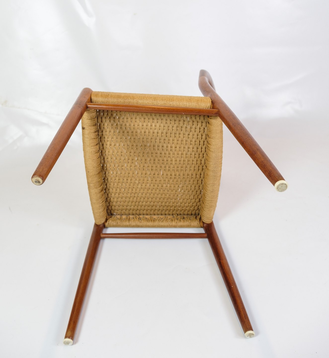 Stolene er fremstillet af teak, kendt for sin holdbarhed og rige, varme tone. Teaktræets naturlige åretegninger og farver fremhæves af en glat finish, der både beskytter træet og forstærker dets æstetiske kvaliteter. Teak var et populært materiale i mid-century design på grund af dets styrke og skønhed, hvilket sikrer, at stolene kan modstå daglig brug samtidig med at de bevarer deres elegance.