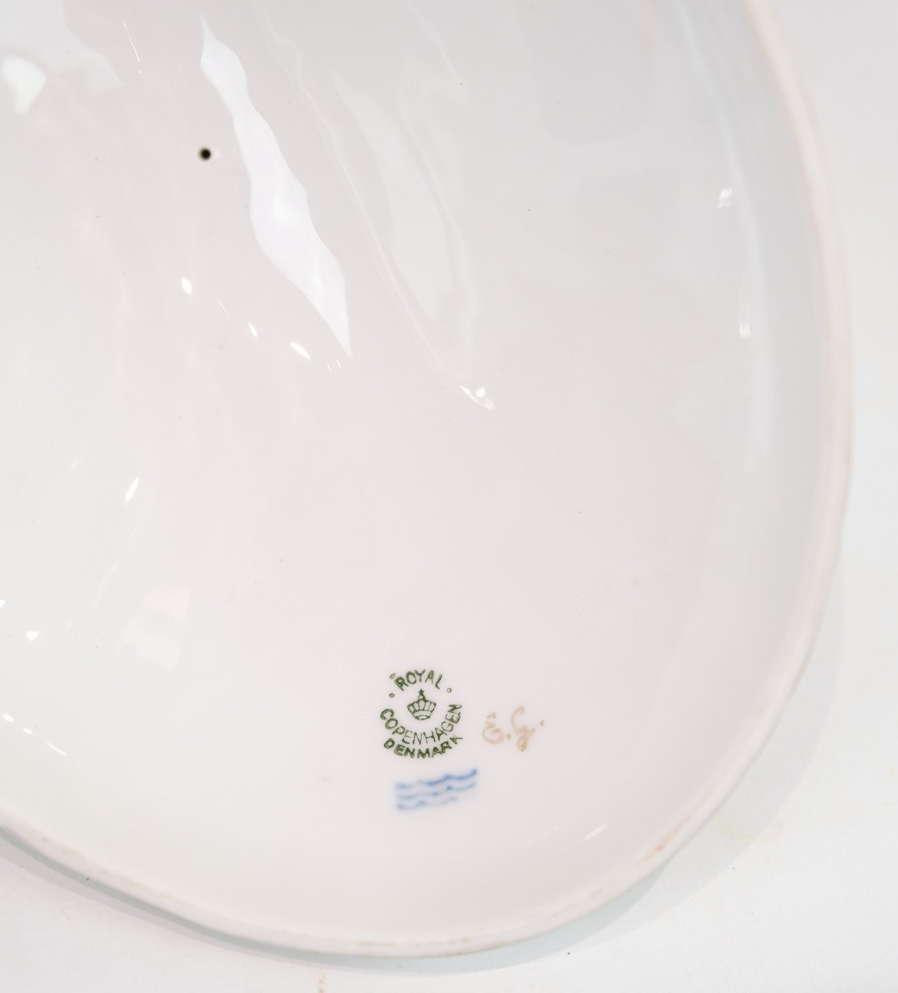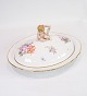 Large Lid Dish decorated with a "Putti" sitting on the lid made of Royal porcelain with patterned Saxon flower decorated at the edges with gold. Manufactured by Royal Copenhagen in approx. 1923, where all their goods have been hand painted and subsequently become very rare. The dish is without flaws or defects.