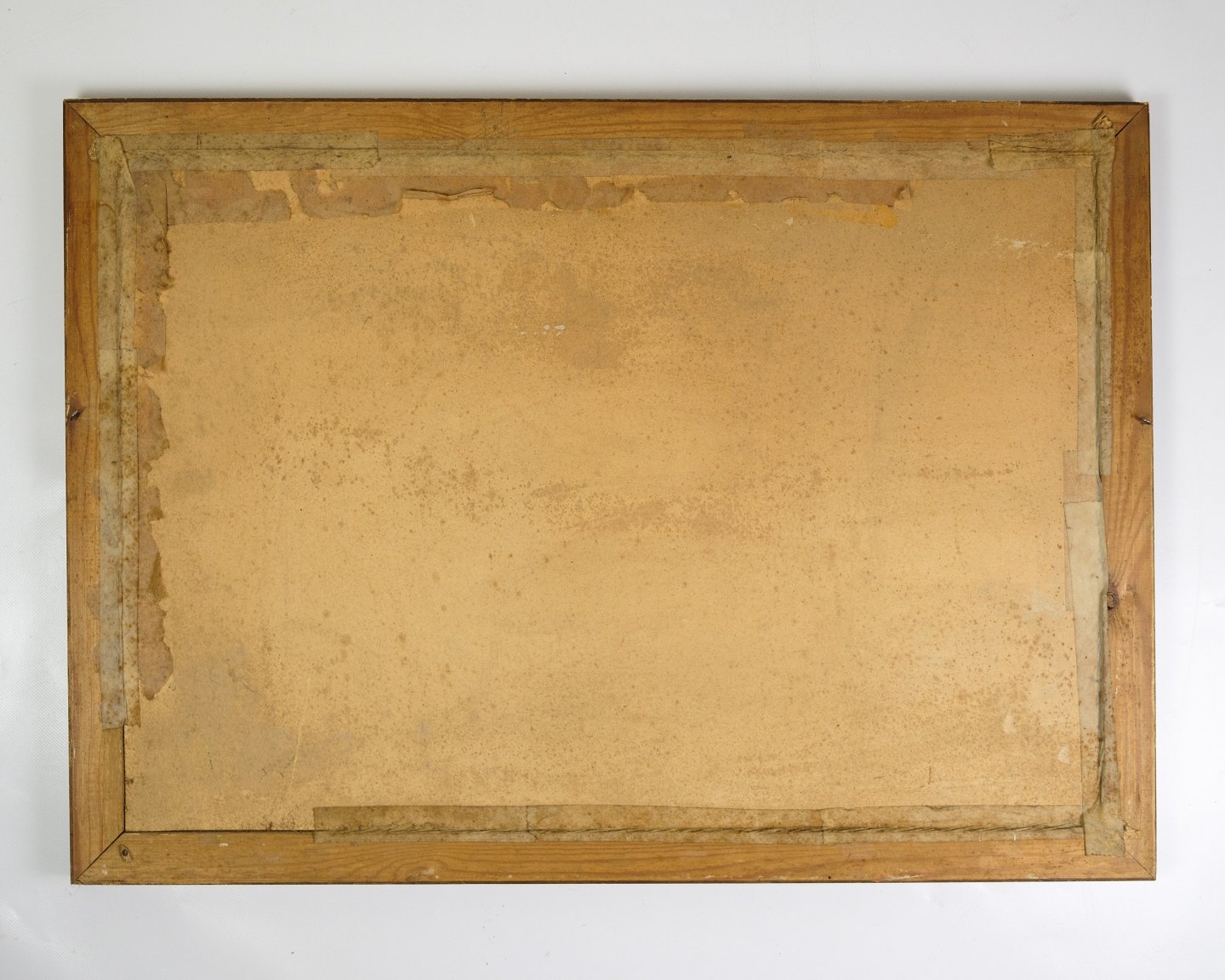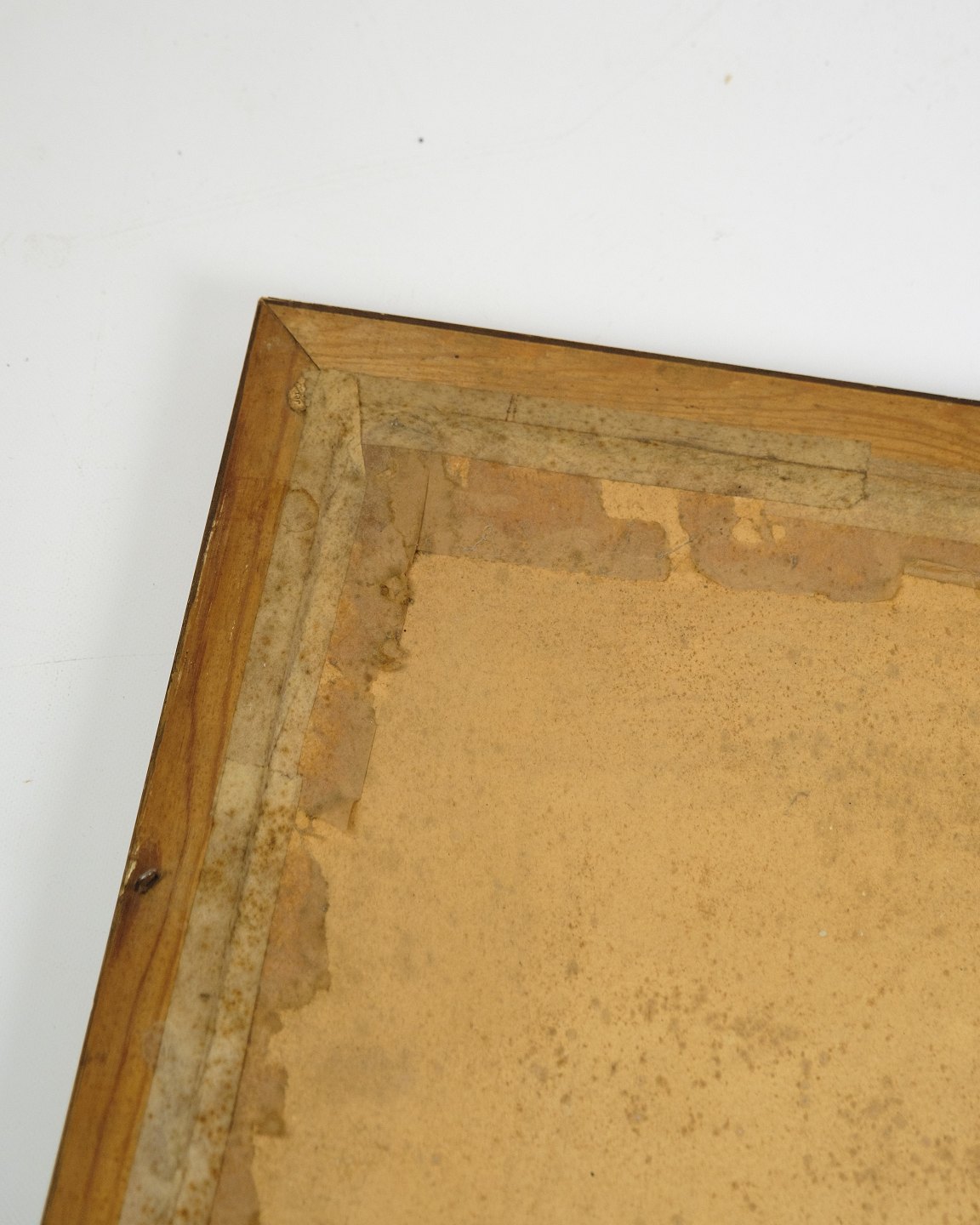 Painting on canvas with the motif of a farmhouse located in a forest, with the forest and the water as a background to the picture. A small road leads down to the house and creates an atmospheric connection between nature and home. The painting captures a peaceful atmosphere with the calm elements of nature.