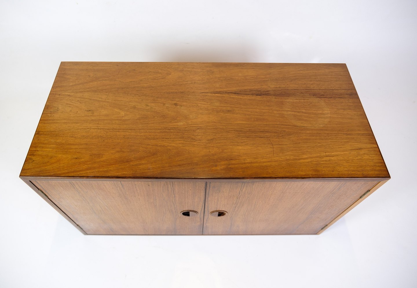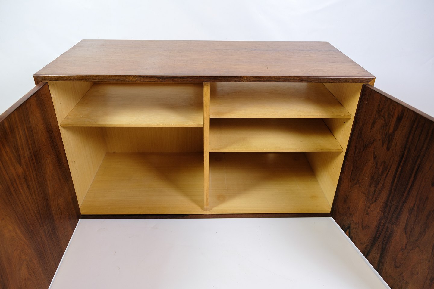 Cabinet in rosewood from the 1960s, of Danish design. The cabinet has 2 large compartments with shelf space and is equipped with attractive handles that give it an extra touch of elegance and good craftsmanship.