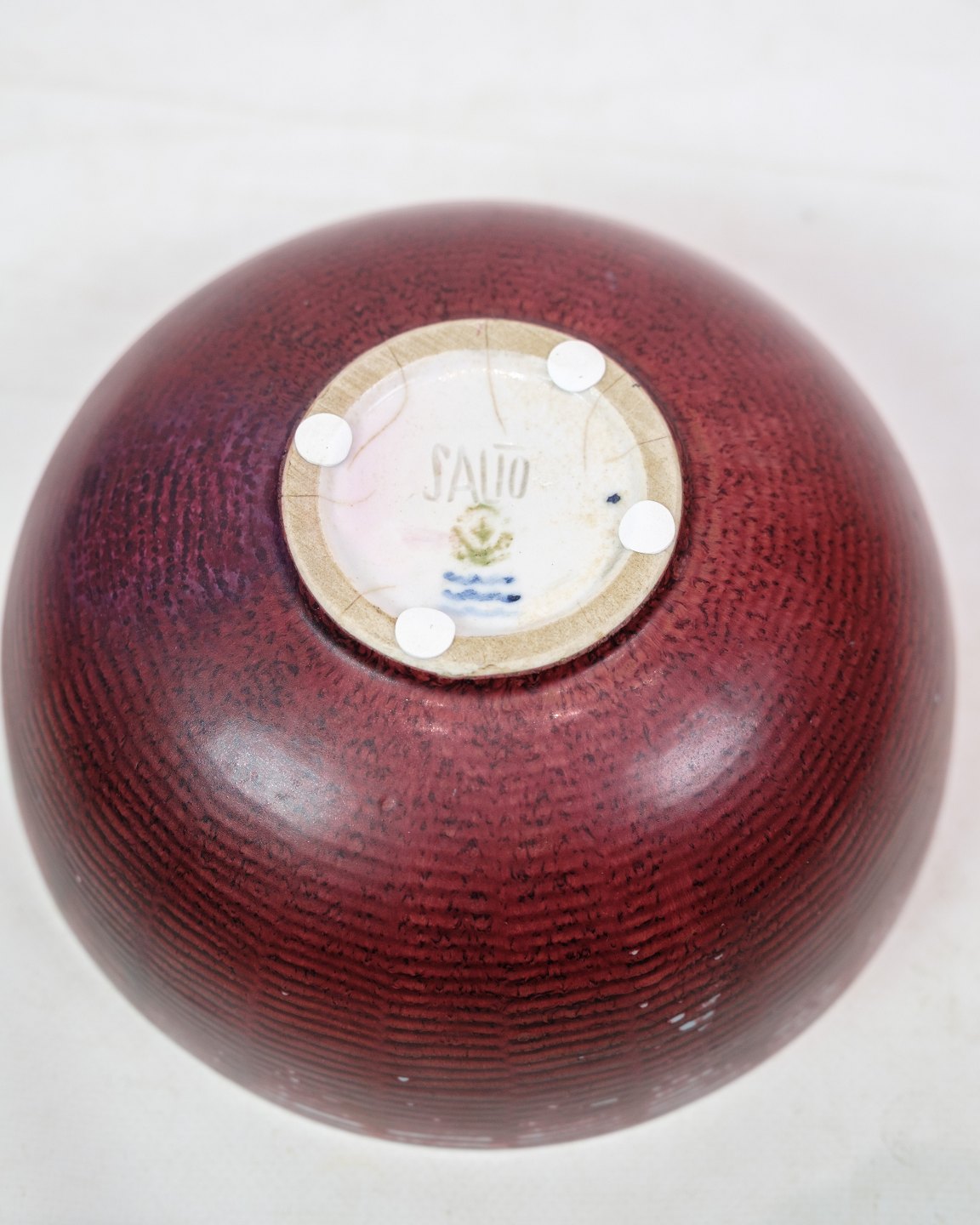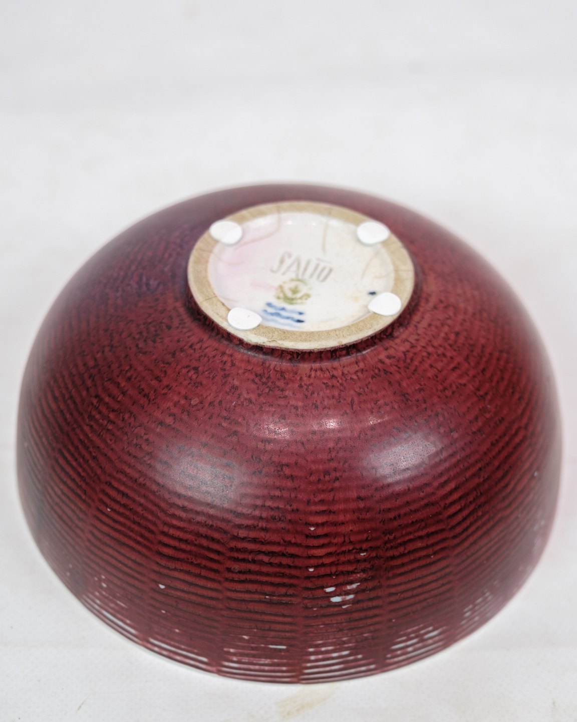 Kontakt os vedrørende prisKeramikskål, model 20.717, med okseblodsfarvet glasur, designet af Axel Salto for Royal Copenhagen. Skålen er et klassisk eksempel på Salto's eksperimenterende tilgang til keramik, hvor han brugte mange forskellige glasurer for at skabe dybe og rige farvetoner.