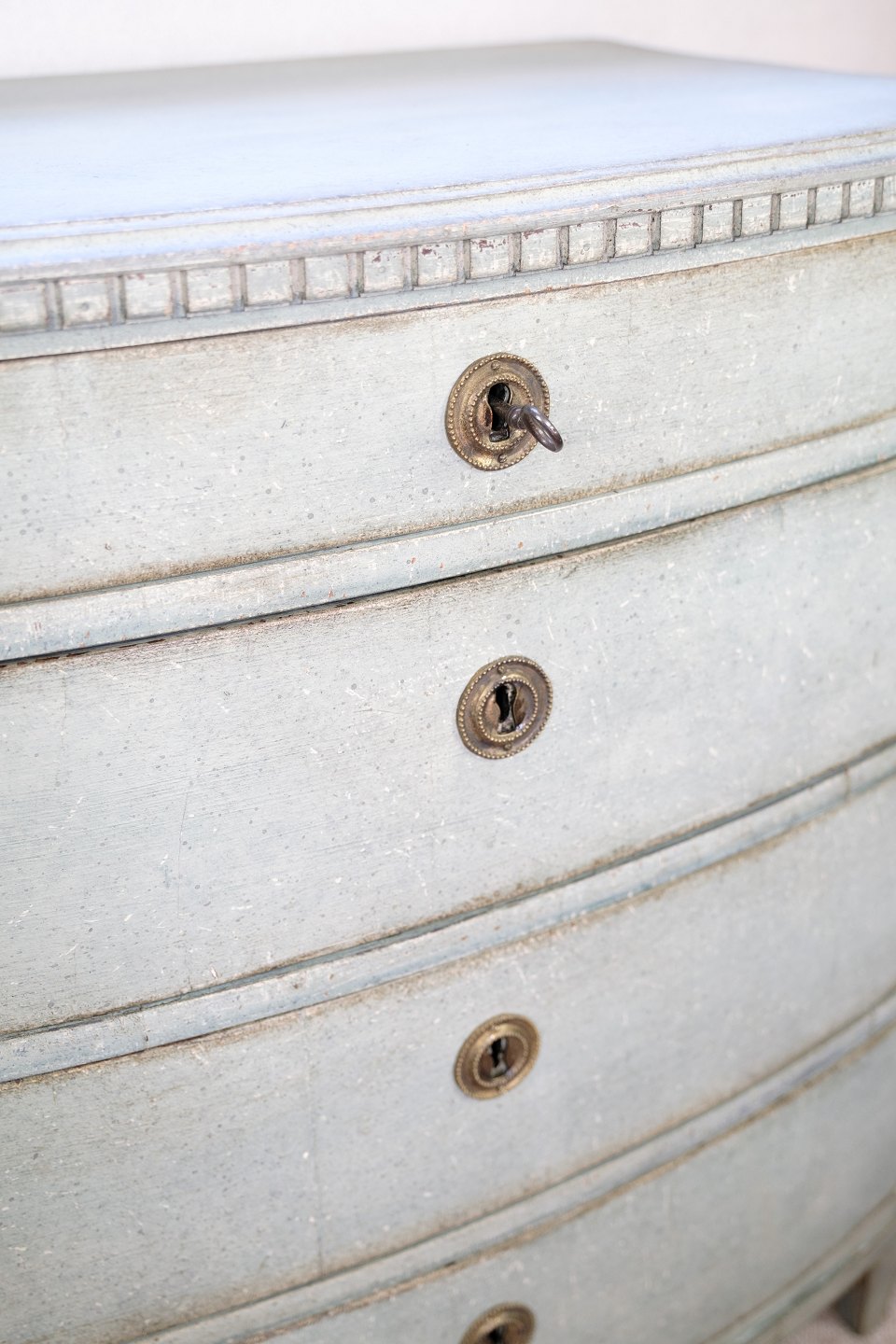 Kontakt os vedrørende prisOriginalt malet kommode fra Louis Seize-perioden, fra København, ca. 1790'erne. Kommoden er i en grønlig patineret farve, som afspejler tidens æstetik og stil. Louis Seize-møbler er kendetegnet ved deres lige linjer og klassiske former, og de blev ofte brugt i herskabelige hjem. Denne kommode er et godt eksempel på datidens håndværk, hvor farven og patinaen tilføjer en historisk charme. Kommoden blev brugt til opbevaring i soveværelser eller stuer i de finere hjem fra denne periode.