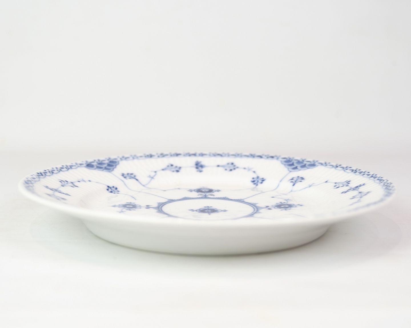 Frokosttallerken mærket 1/578 fra Royal Copenhagen. Fremstillet i porcelæn med musselmalet halvblonde design, tallerken er håndmalet i blå dekoration.