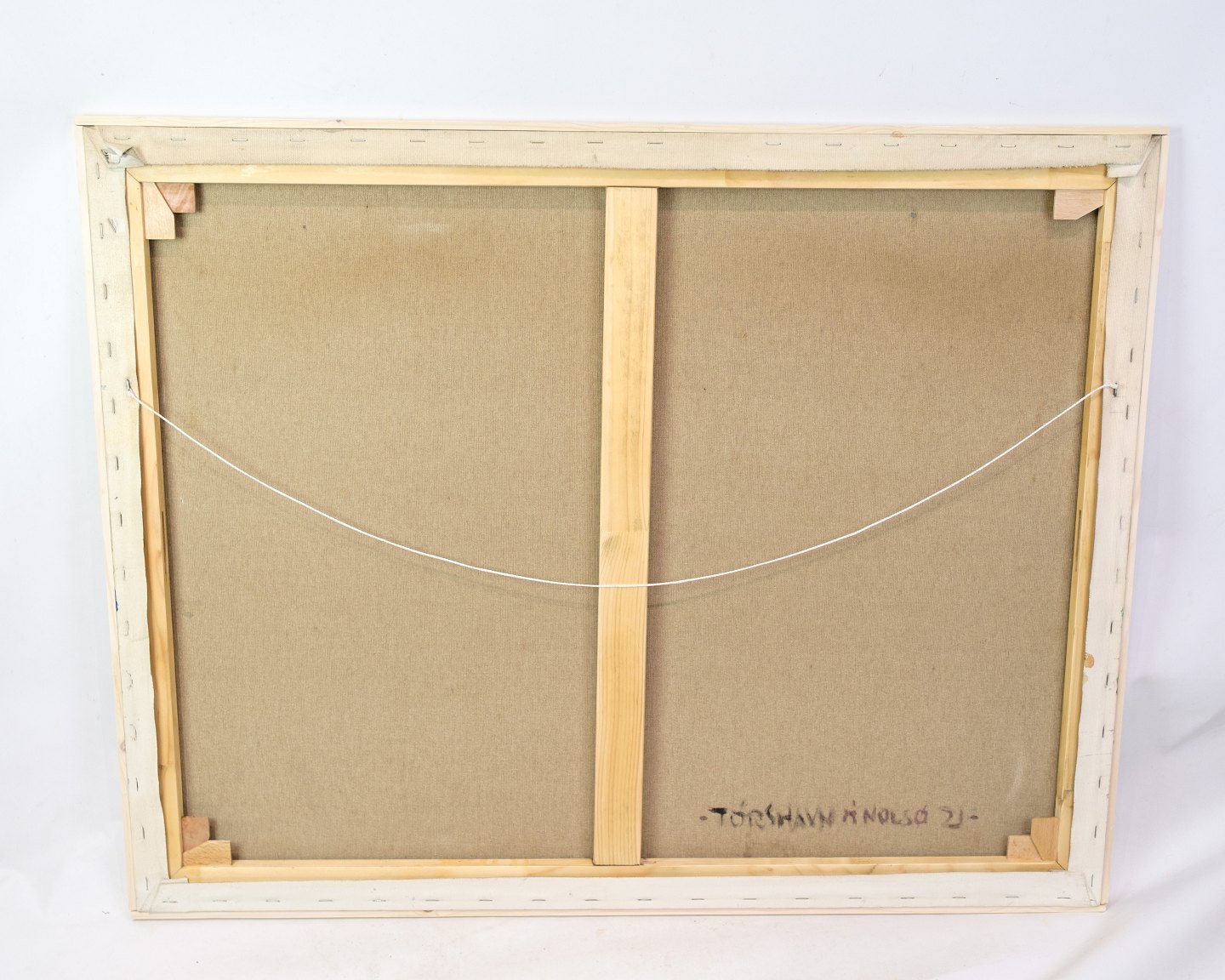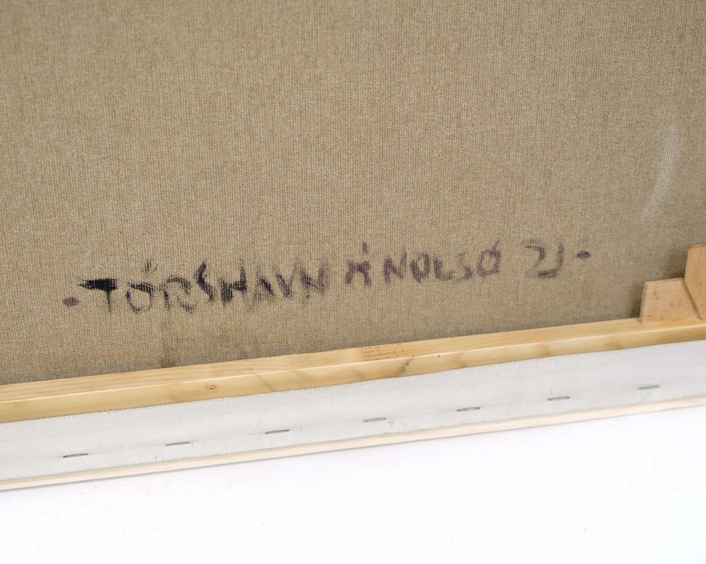 Please contact us for price informationColorful painting by Faroese artist Zakarias Heinesen (b. 1936), painted with oil paint on canvas. The motif shows a view of Tórshavn in a characteristic expressive style, where light and colors merge into an atmospheric overall picture. Signed lower right and dated 2021.