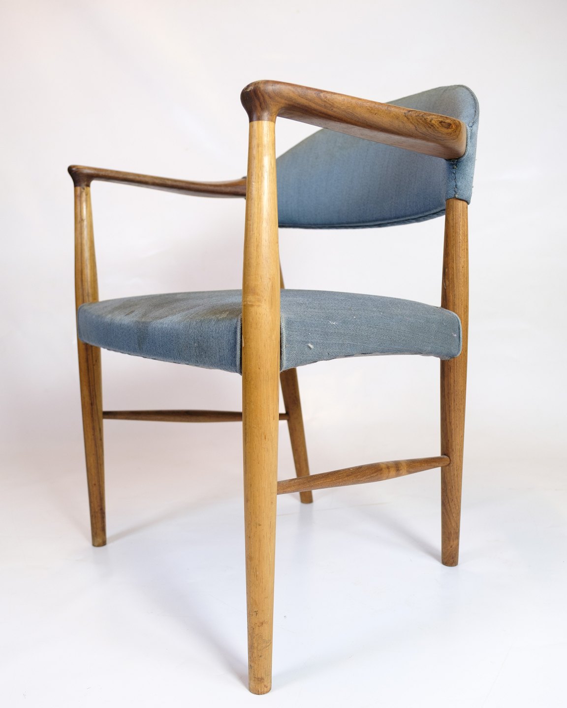 Danish armchair in teak with blue fabric seat designed by Kurt Olsen in the 1960s.