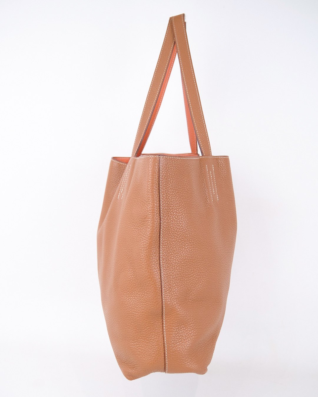 SolgtHermès Double Sens 36 Tote i vendbart Taurillon Clémence-læder. Farver: Guld & Orange Poppy. Eksklusivt fransk design og håndværk.