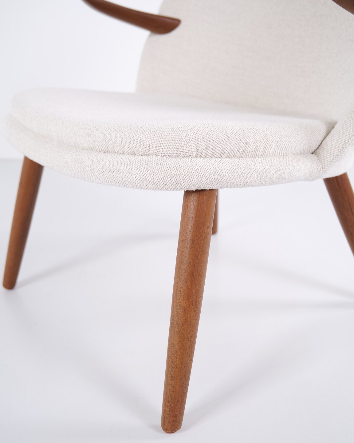 Kurt Olsen armchair from Glostrup Møbelfabrik. Teak with light fabric, 1960s.