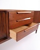Sideboard from the 1960s, made of teak with three central drawers and louvered doors on the sides.