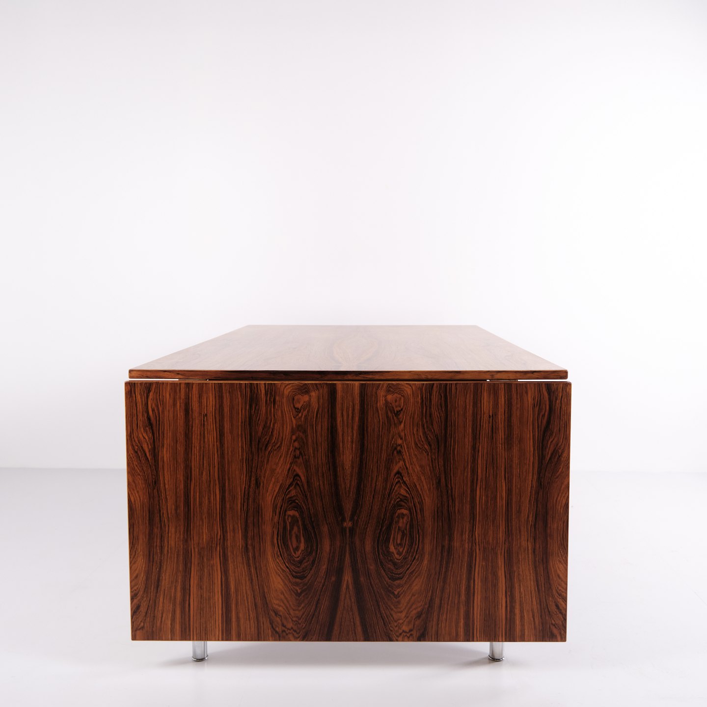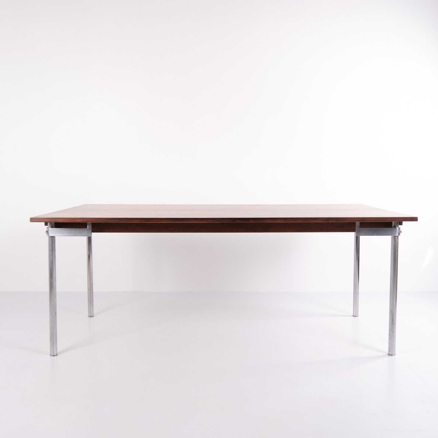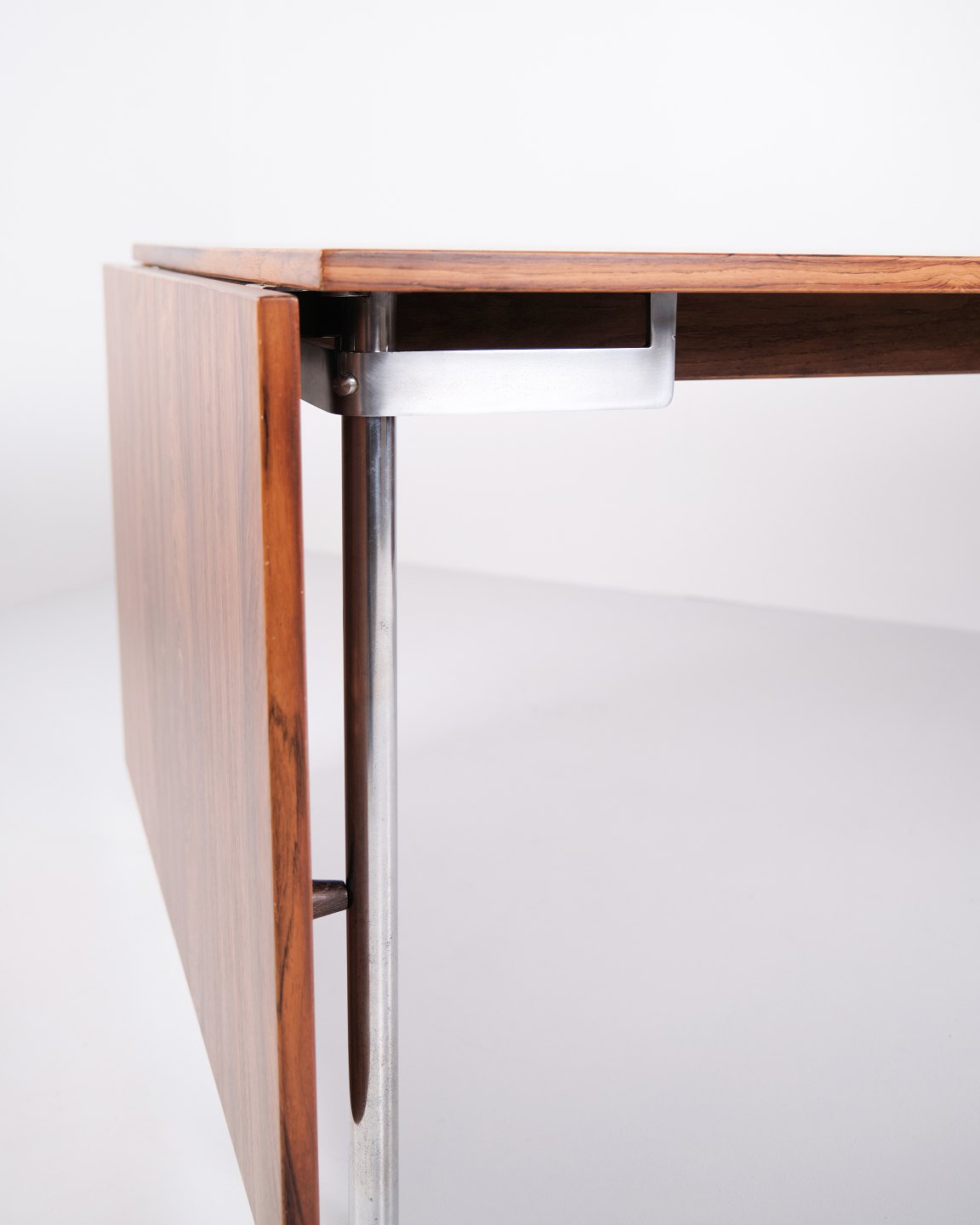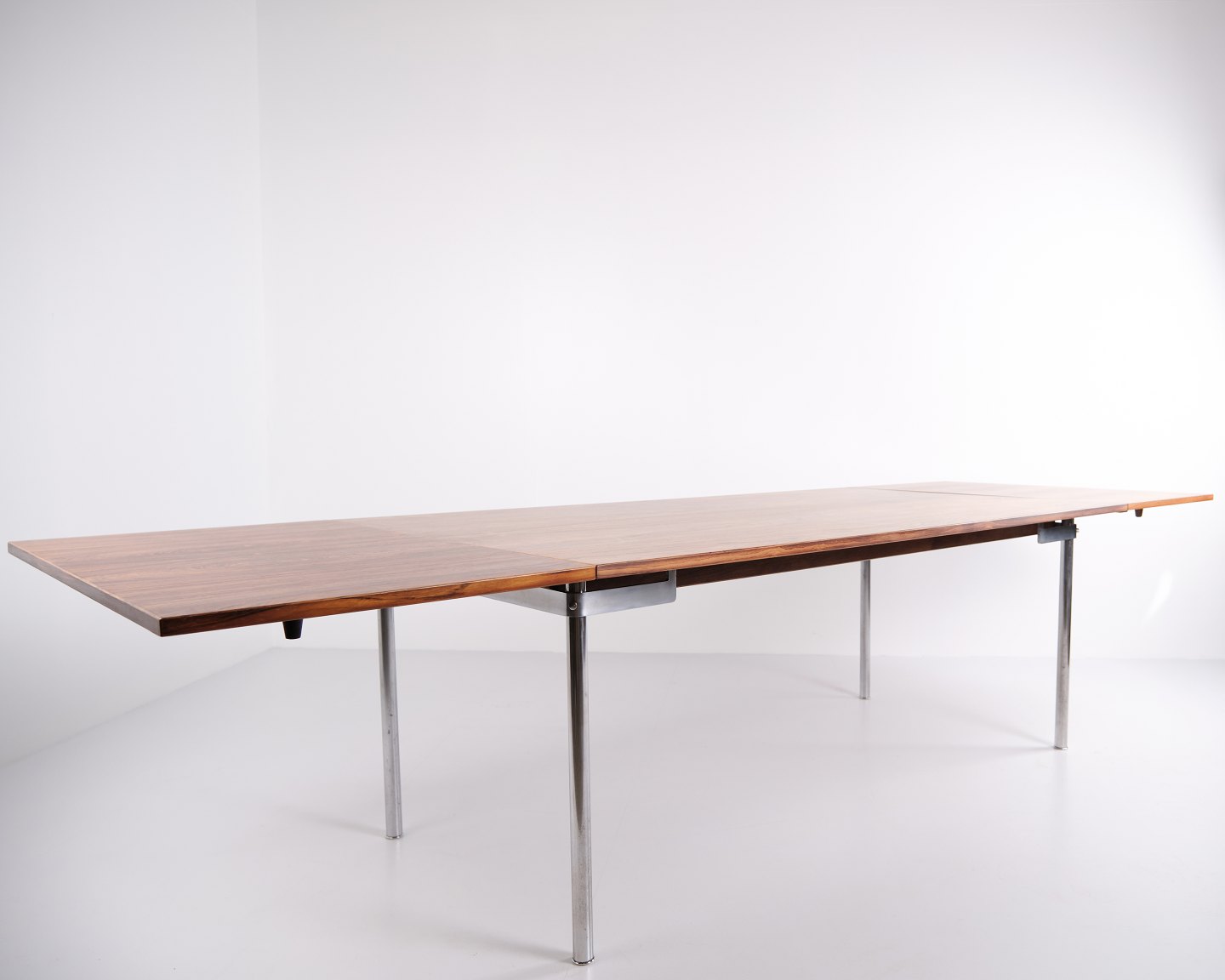 Kontakt os vedrørende prisSpisebord model AT 319 af Hans J. Wegner for Andreas Tuck. Riopalisander med stålben og 2 tillægsplader. Dansk design fra 1960’erne.
