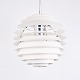 Ikonisk pendel, PH Louvre (tidligere kaldet PH Kugle), designet af Poul Henningsen i 1957 til Adventistkirken i Skodsborg. Lampen er opbygget af 13 lameller monteret på en indre konstruktion, som sikrer et blødt og blændfrit lys. Det kugleformede design skaber en jævn lysfordeling og et skulpturelt udtryk.