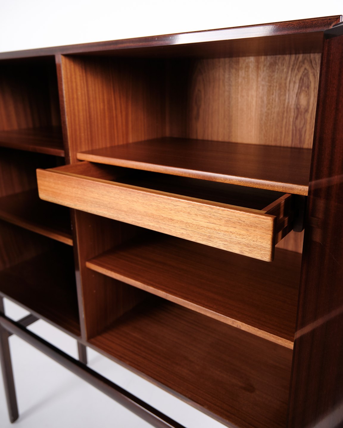 Mahogni skab fra Rungstedlund serien af Poul Jeppesens Møbelfabrik. Klassisk dansk design med funktionelt og tidløst udtryk.