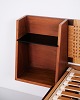 — Materiale: Fineret teak, massiv teak, sjeneflet, sort kunstlæder og messing