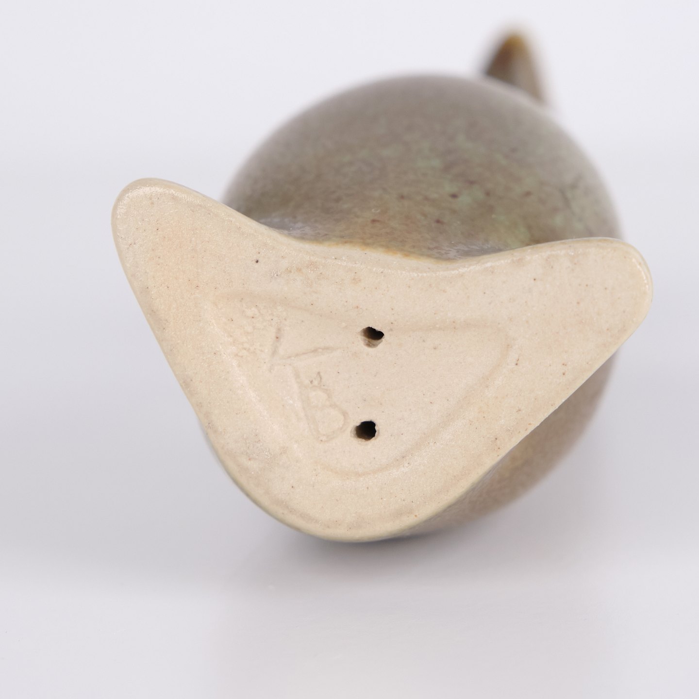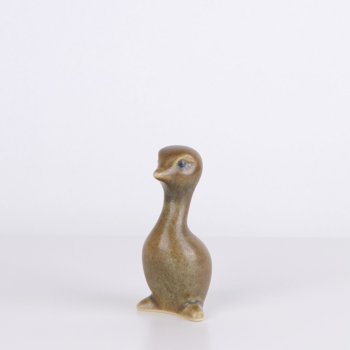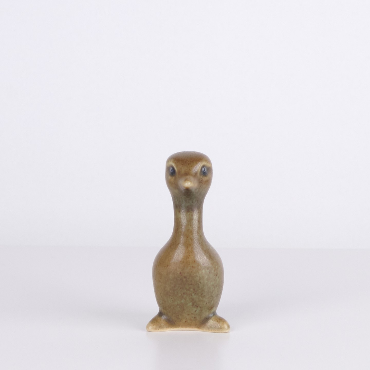 Fuglefigur af Knud Basse udført i glaseret keramik. Modellen har organisk formsprog med lang hals og stiliseret udtryk, kendetegnende for Knud Basses populære dyrefigurer. Dansk kunstkeramik og samlerobjekt fra midcentury perioden. Knud Basse er særligt kendt for keramiske dyrefigurer, især fuglemotiver.