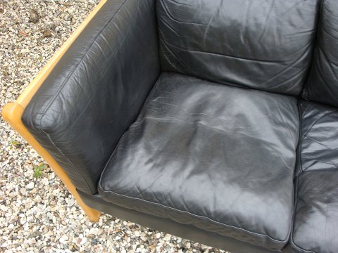3 personers sort lædersofa fra 1970 erne i super fin stand