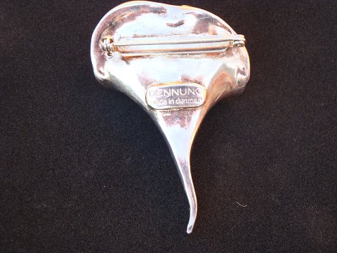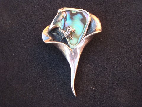 SolgtUnik broche i sølv med en opal hvor på der sidder en lille rotere bar frø designet af Erik Dennung