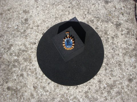 SoldPendant in 14 carat with beautiful light blue stone designed by O.W. from the 1960s.