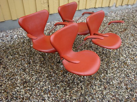 2 Arne Jacobsen chairs with armrests model 3107 in red leather 5000 m2 showroom