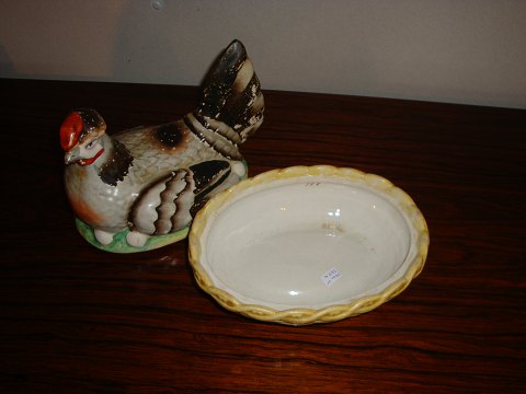 SolgtHøne i fajance fra 1890 med flotte farver. Hel og intakt.