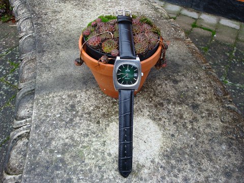 Herreur model omega Genéve automatic med sort kroko læder rem fra 1970erne med 1 års garanti.
