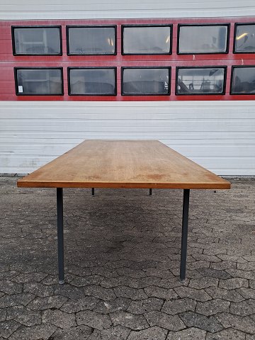 Konferencebord i fineret teaktræ med metal understel, fra 1970erne.