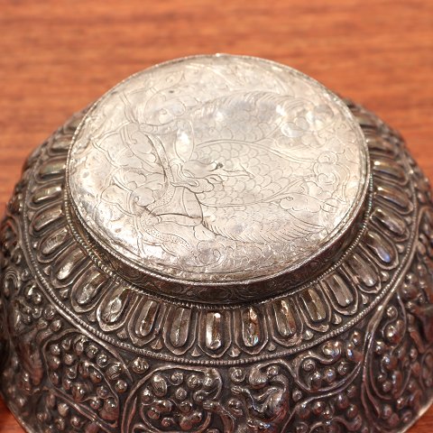 Tibetansk sølvskrin med koraller og træ indvendigt,