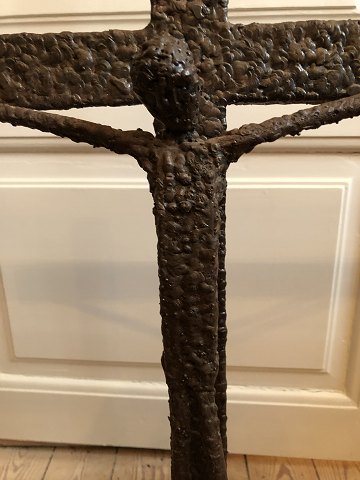 Kristus figur på kors udført i patineret støbejern.
