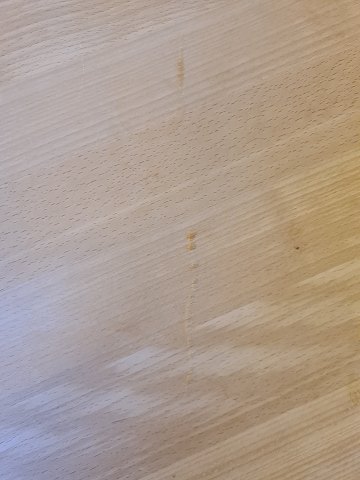 Bordpladen har brugsspor og ridser.
