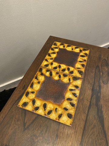 Indskudsborde i palisander og med kakler på det største. Fremstår pæne og velholdte uden nævneværdige brugsspor. OBS sættet består af 2 borde.
