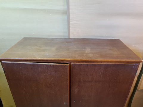 Dækketøjsskab i fineret egetræ og teaktræ, fra 1960erne.