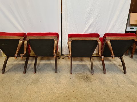 4 Salonstole i egetræ med velourbetræk, fra 1920erne.