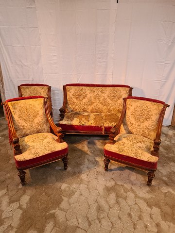 Sofa og 3 lænestole i massivt mahogni, fra 1910erne.
