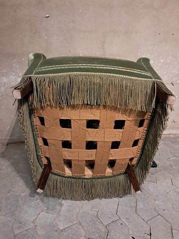 Lænestol i velour med skåneærmer, fra 1950erne.
