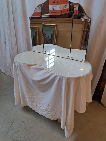 Marie Antorinette sminkebord med spejl og glasplade, fra 1950erne.