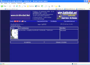 Skærmbillede fra forsiden af antikvitet.net. Udstillerfortegnelse