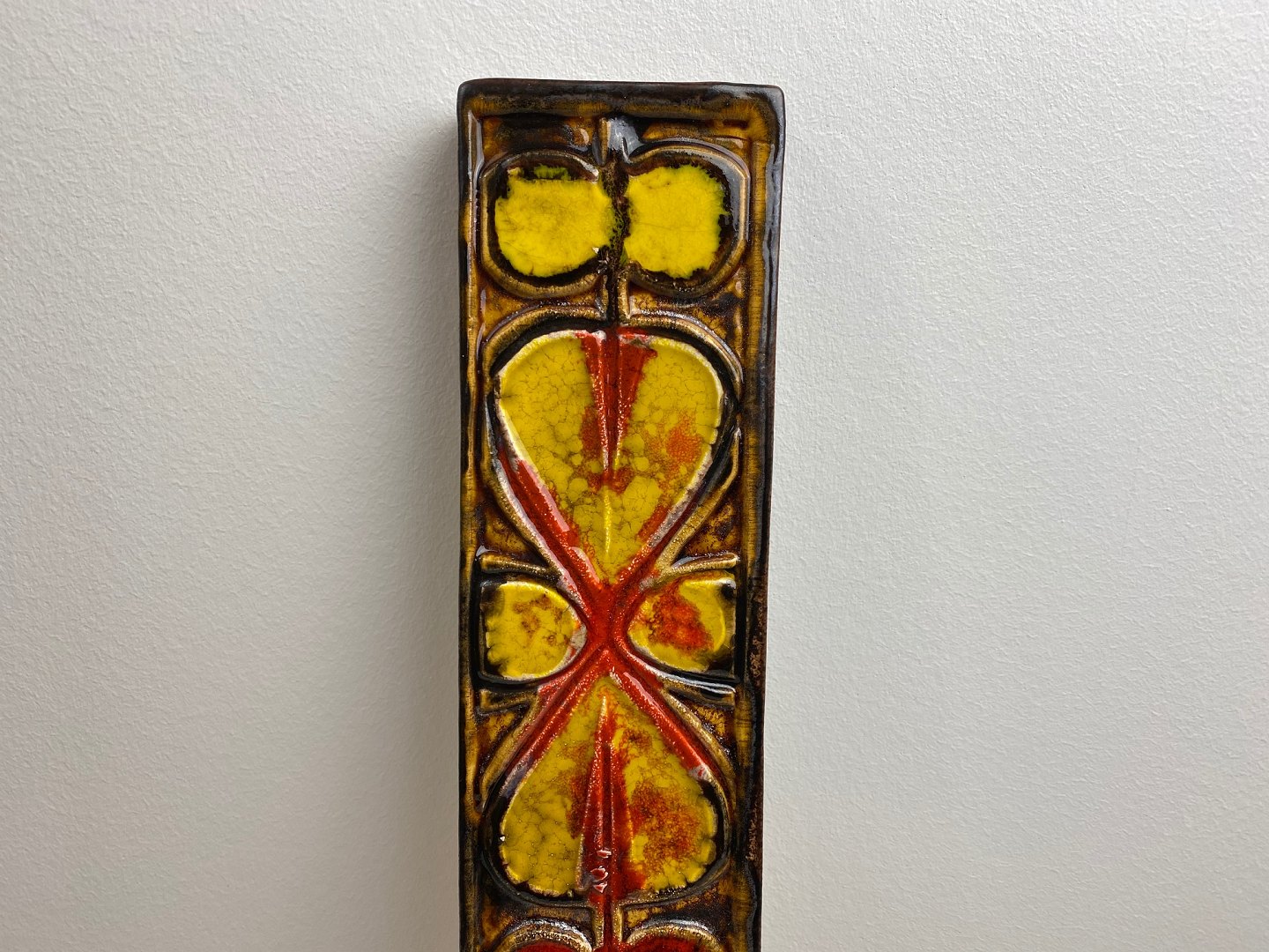 Relief from Tilgman's ceramics in Sweden in wild colors, 1960s-1970s. The relief is 48.50 centimeters high and 8.50 centimeters wide. Good condition. Sku 1289